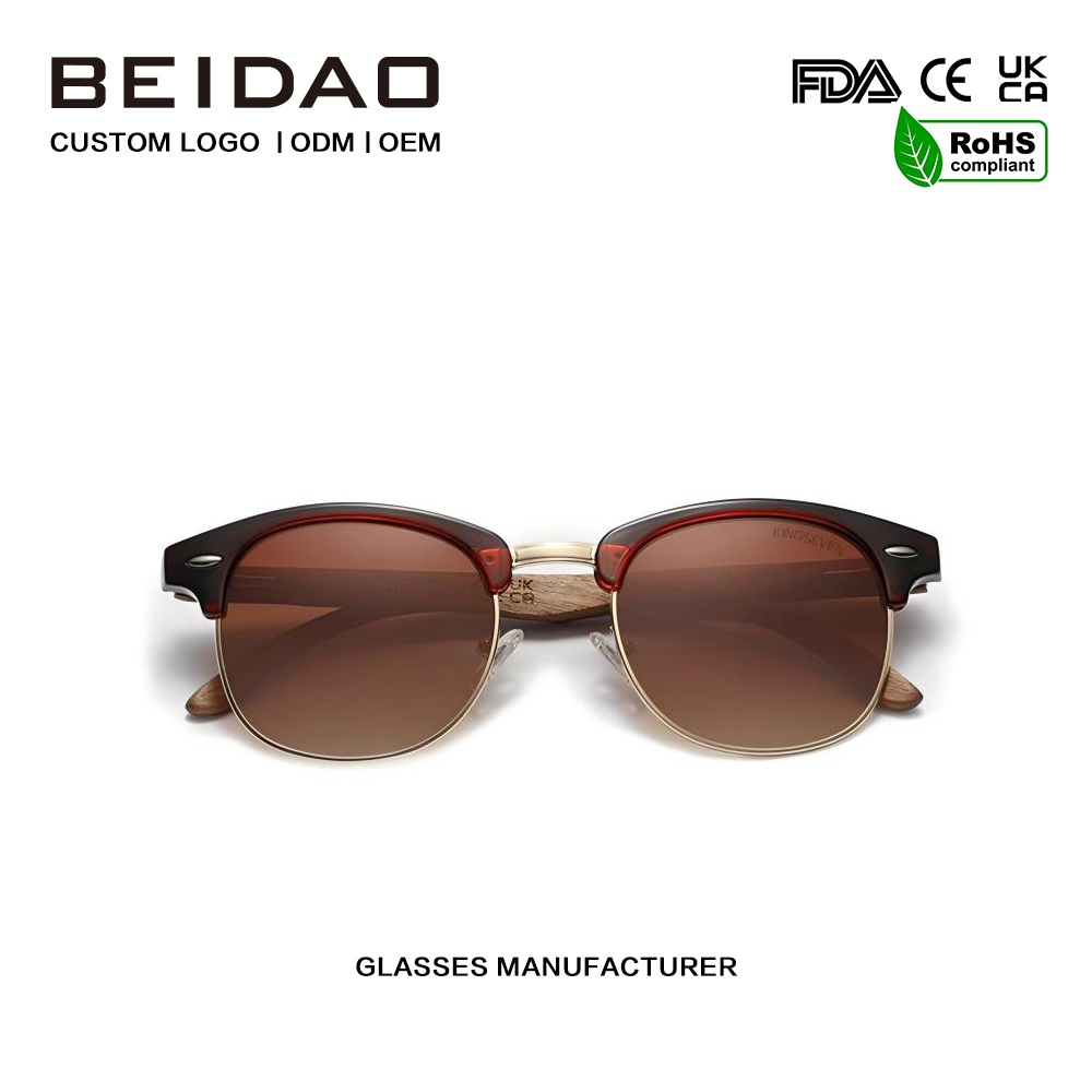 Коричневые поляризационные солнцезащитные очки из орехового дерева с градиентом изготовлены из высококачественного металла и их нелегко повредить.
